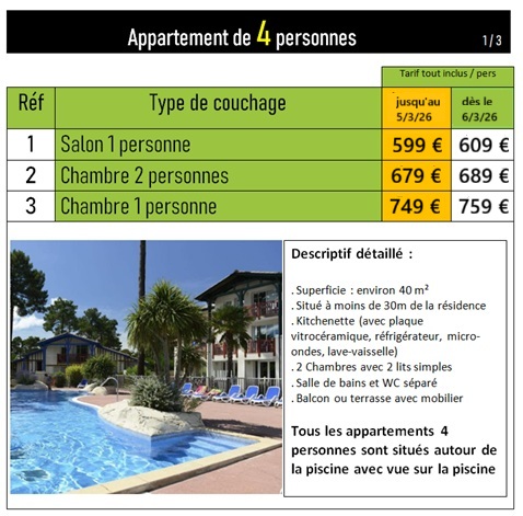 - Appartement 4 personnes (cliquez pour agrandir) :