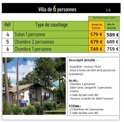 – l’hébergement 8j/7n à la résidence Odalys de Gujan Mestras,